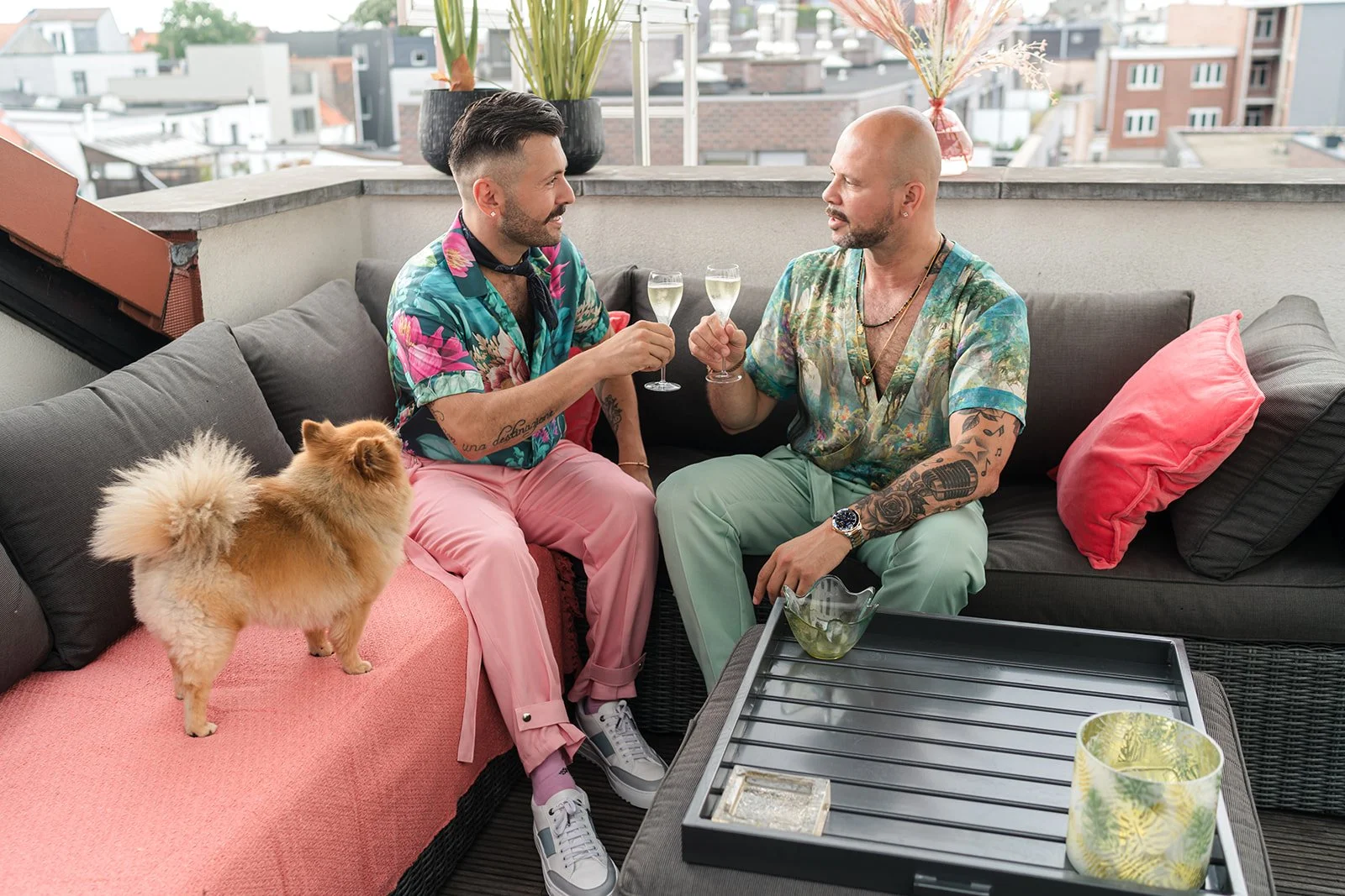 Ik ken Sandro & Dave allebei al een lange tijd, en met elk van hen heb ik een unieke en speciale vriendschap gedeeld. Toen ik hoorde dat ze een stel waren geworden, maakte mijn hart een vreugdesprongetje – het voelde gewoon goed. Ik moet nog steeds lachen om de bijnaampjes die ze voor elkaar hebben: Donkey en Dommel. Het zijn die kleine dingen die hun band zo bijzonder maken.