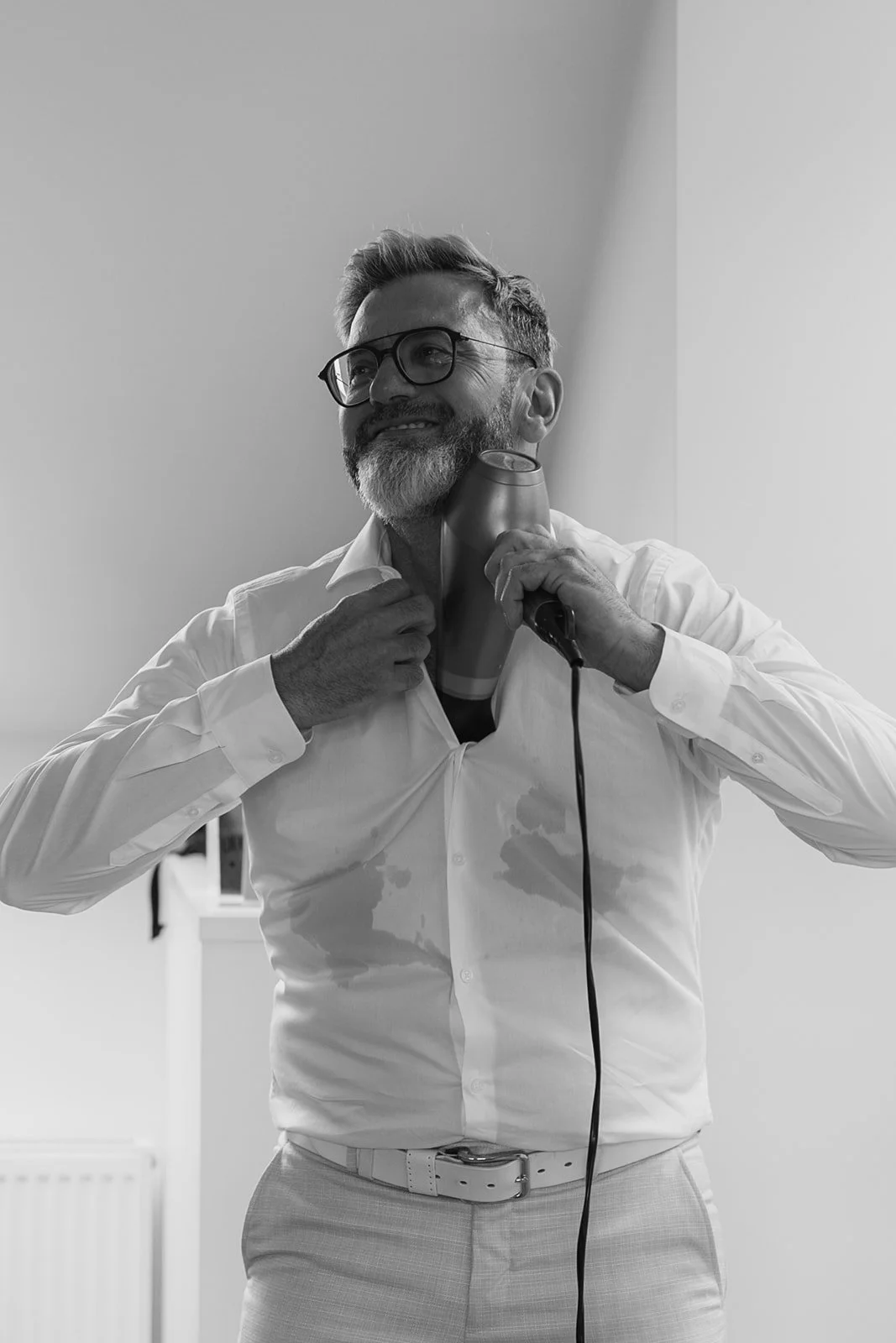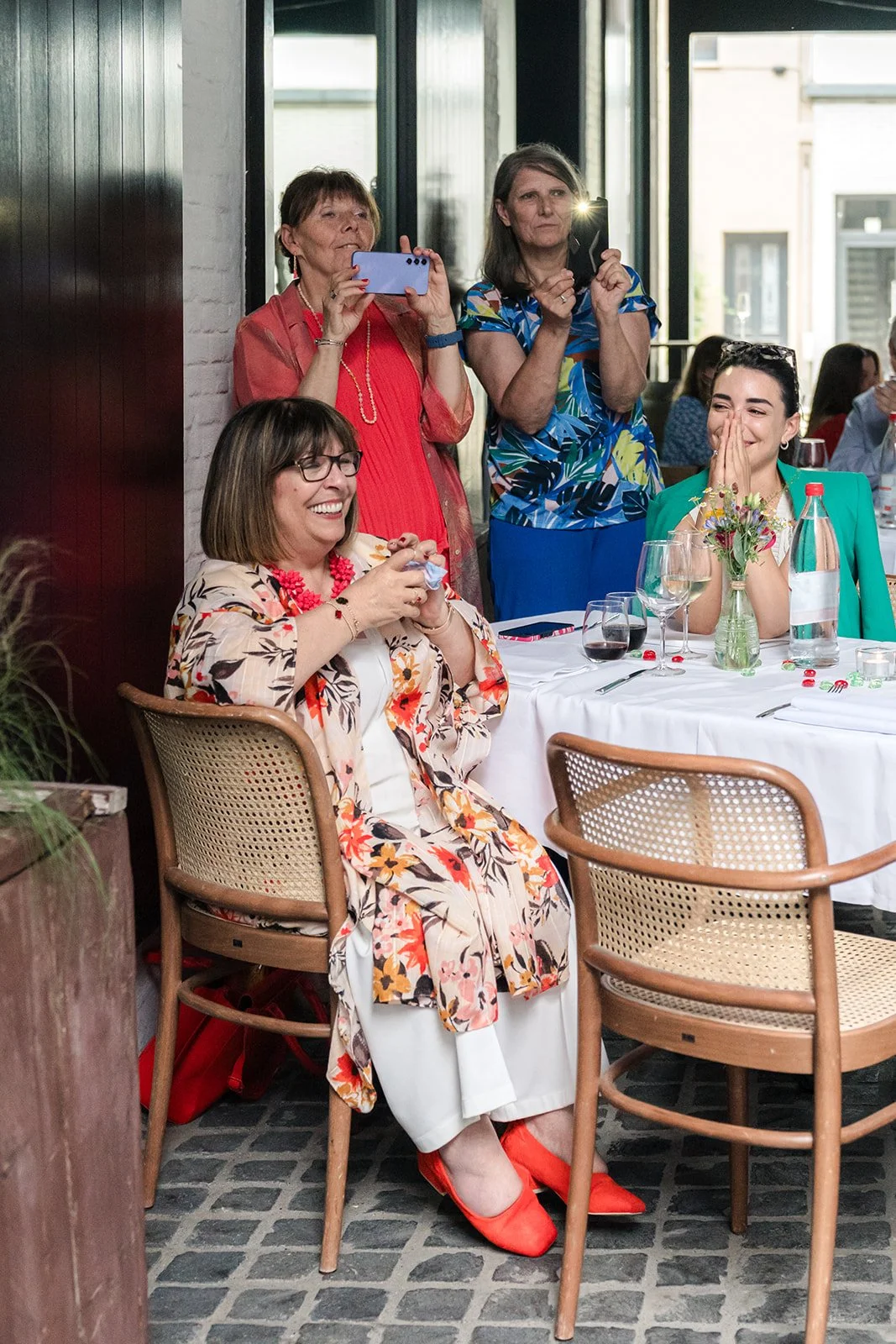 Toen hun grote dag, een prachtige LGBTQIA+-huwelijksviering, eindelijk arriveerde, was de sfeer gewoon perfect. Ze waren allebei zo ontspannen en straalden liefde en vreugde uit. Het was een dag vol eindeloos lachen, warme glimlachen en zelfs enkele speelse momenten met grappige konijnen. Het weer? Een typische regenachtige bruiloft in België, maar dat gaf de dag juist een extra vleugje magie.