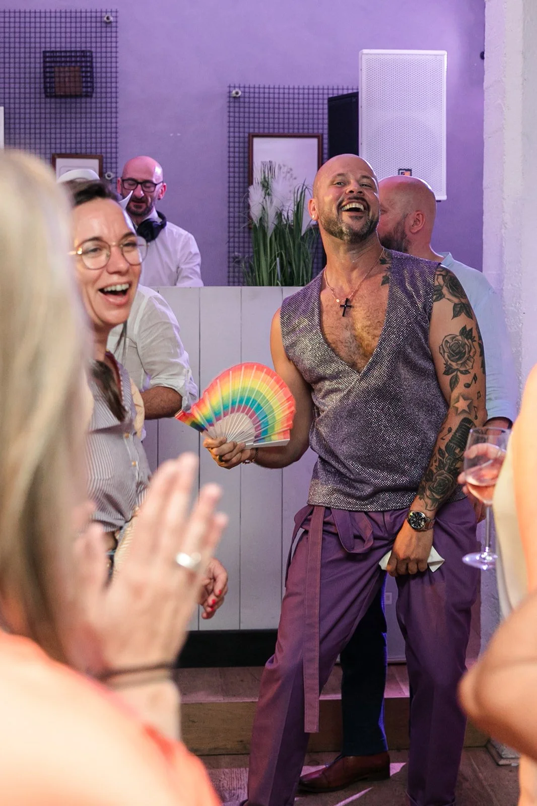 Deze levendige dag was niet zomaar een bruiloft; het was een ware viering van liefde en eenheid binnen de LGBTQIA+-gemeenschap. Een love is love bruiloft waarin trots centraal stond. Het was een eer om deze authentieke huwelijksverhalen vast te leggen en te zien hoe iedereen liefde in al haar vormen omarmde.